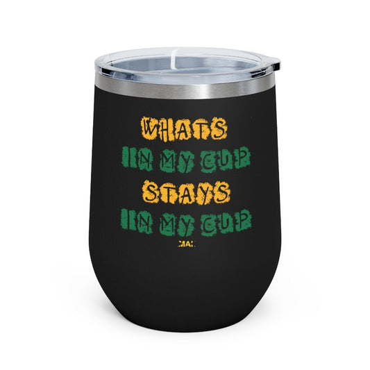 12oz Insulated Wine Tumbler - Whats In My Cup, Stays In My Cup - Jamaica Flag Colors