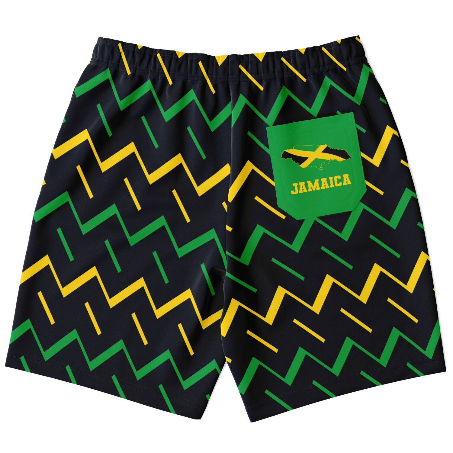 Bring island pride and bold style together with these Jamaica Rebel shorts, designed with high-impact colors and cultural details that stand out. Made with a soft, eco-friendly blend of 20% cotton, 75% recycled polyester, and 5% spandex. From the roaring Lion of Judah to the iconic “REBEL 01” print, these shorts are made for those who rep Jamaica with heart, strength, and style.