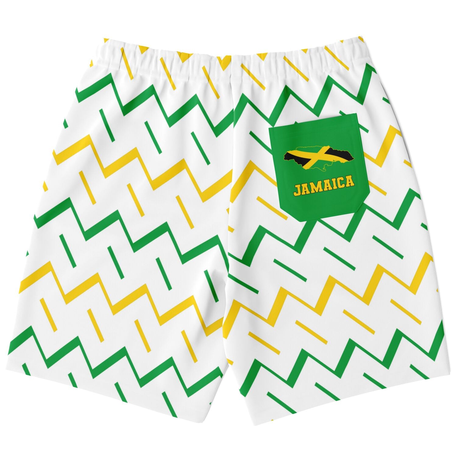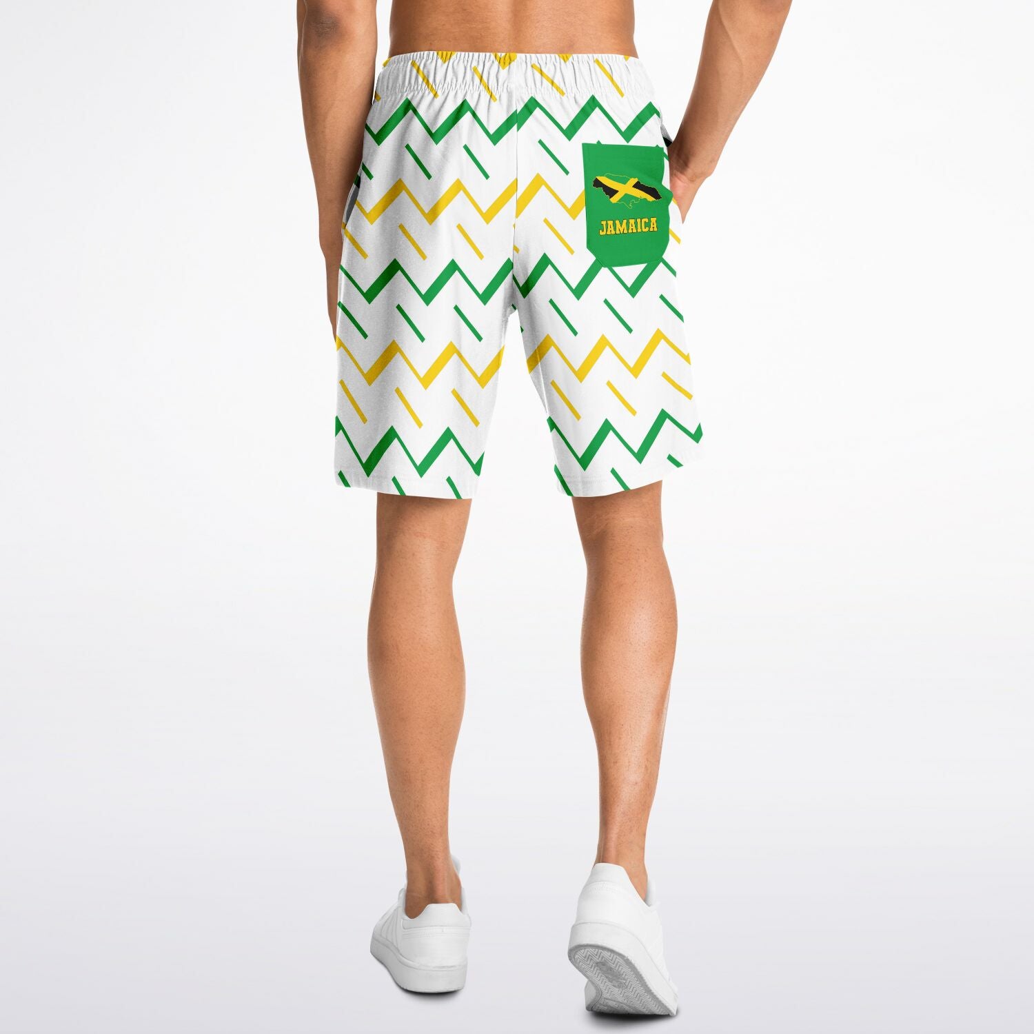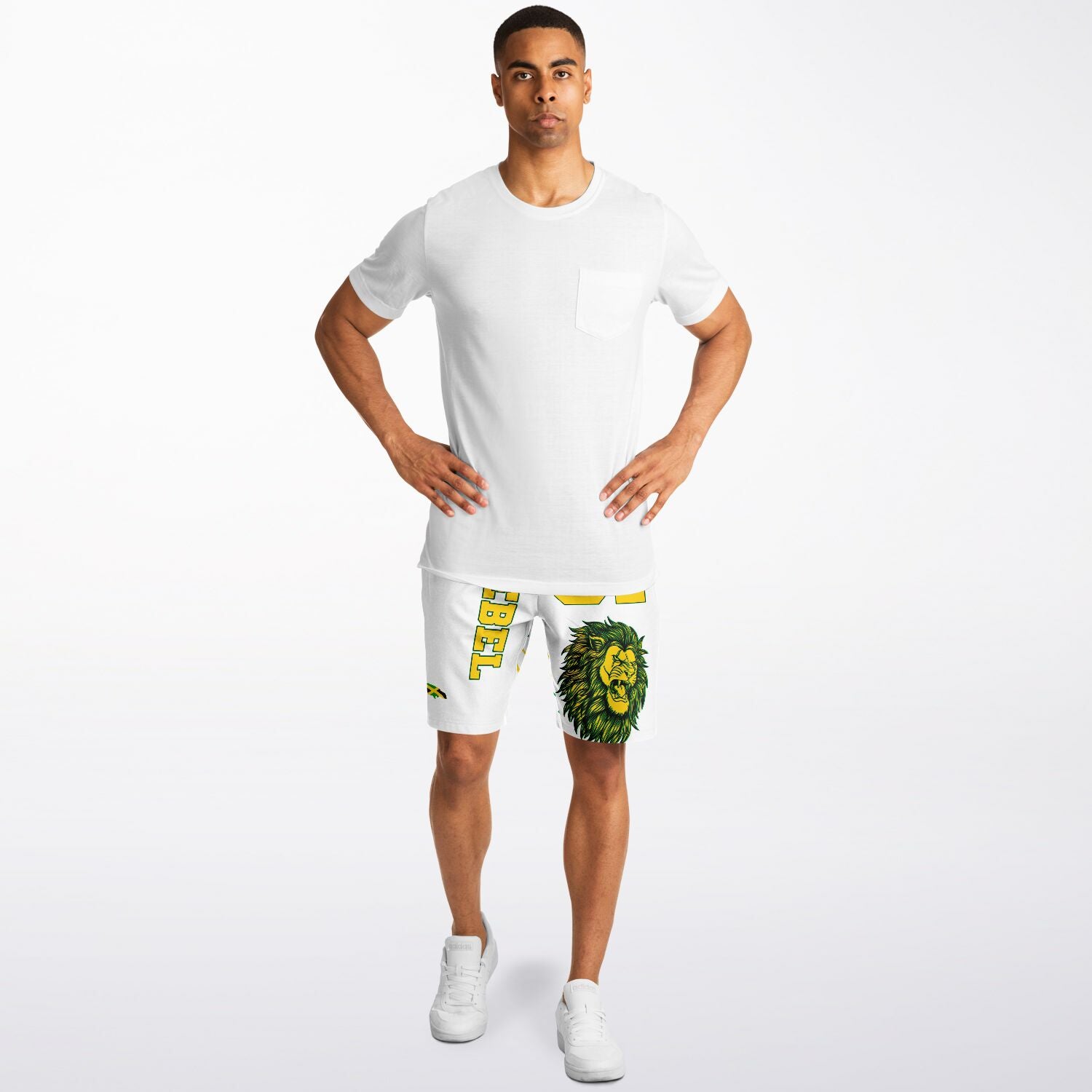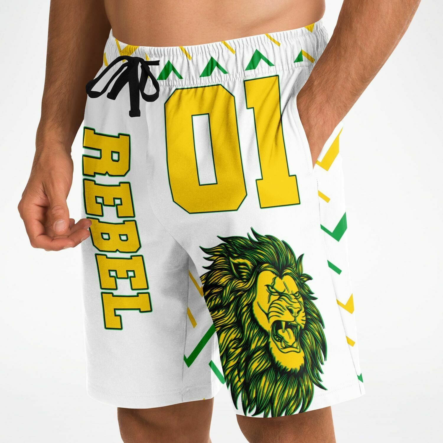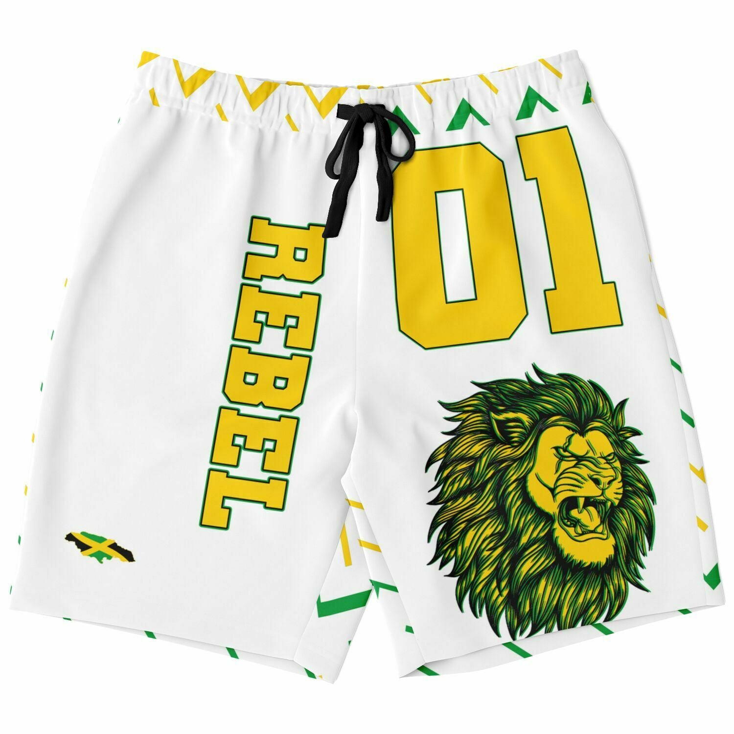 Bring island pride and bold style together with these Jamaica Rebel shorts, designed with high-impact colors and cultural details that stand out. Made with a soft, eco-friendly blend of 20% cotton, 75% recycled polyester, and 5% spandex. From the roaring Lion of Judah to the iconic “REBEL 01” print, these shorts are made for those who rep Jamaica with heart, strength, and style.