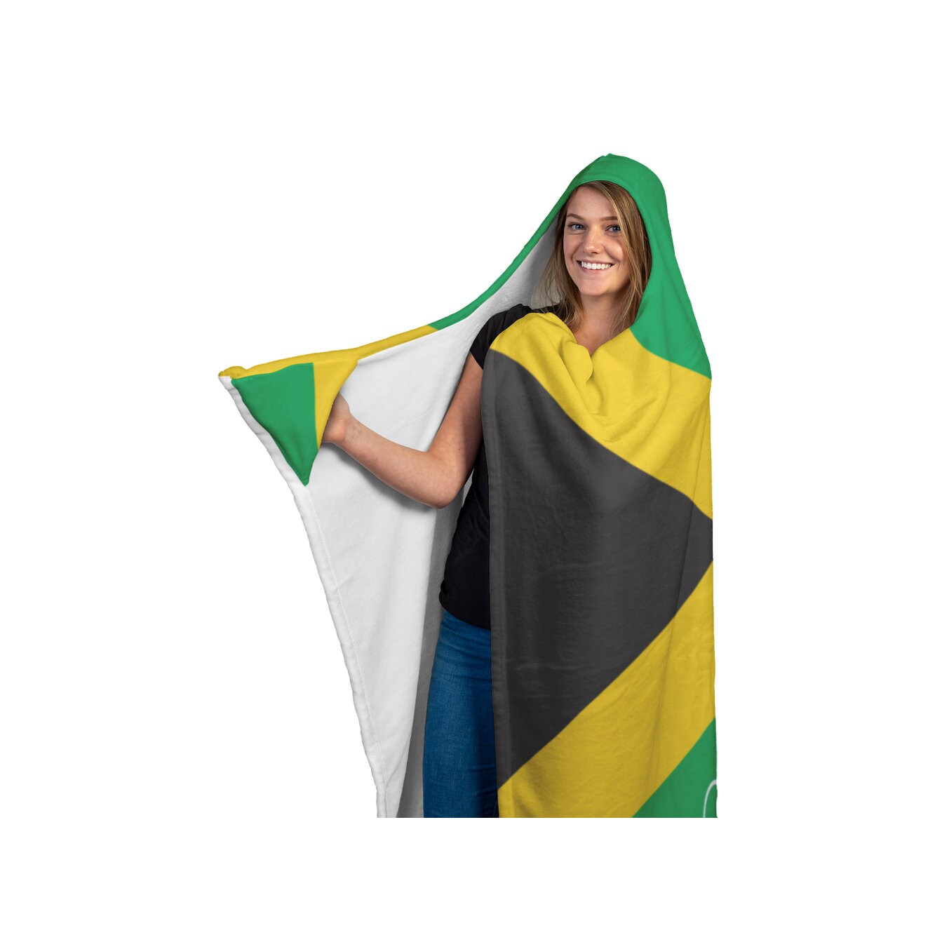 Wouldn't it be nice if you could wrap yourself up in something that represent your country of birth? Look no further than this Jamaican Hooded Blanket complete with sewn on mittens to bring a touch of Jamaica into your home.