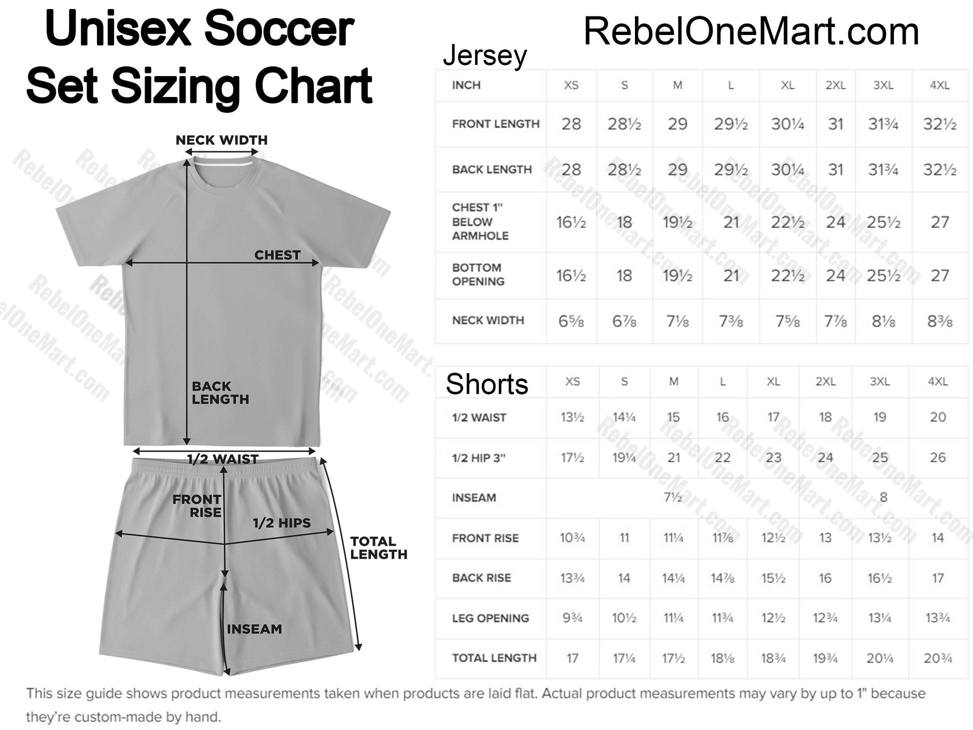 | Front Length | 28 | 28½ | 29 | 29½ | 30¼ | 31 | 31¾ | 32½ |