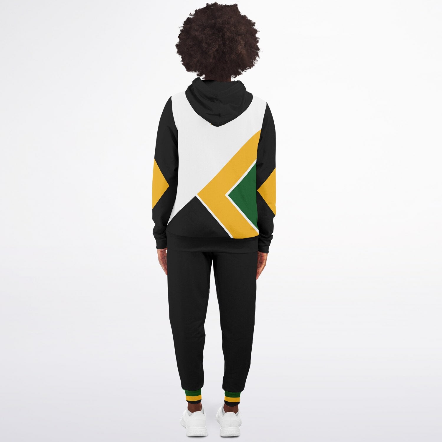 Channel island energy with the Jamaica Zip Hoodie & Jogger Set. Made with a soft, eco-conscious blend of 20% cotton, 75% recycled polyester, and 5% spandex for warmth and everyday comfort. Built for Independence Day weekends, Ocho Rios nights, and island road trips-color that stays true wear after wear.
