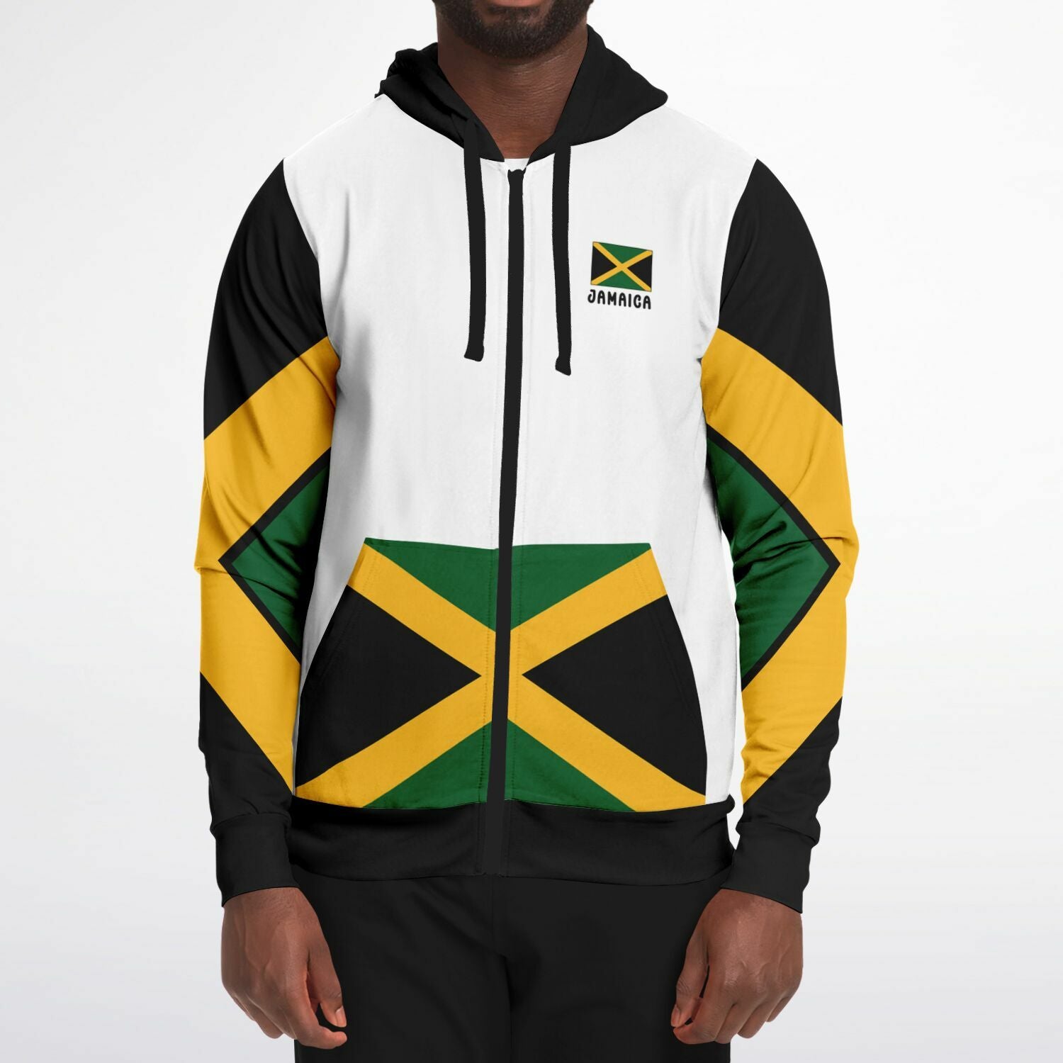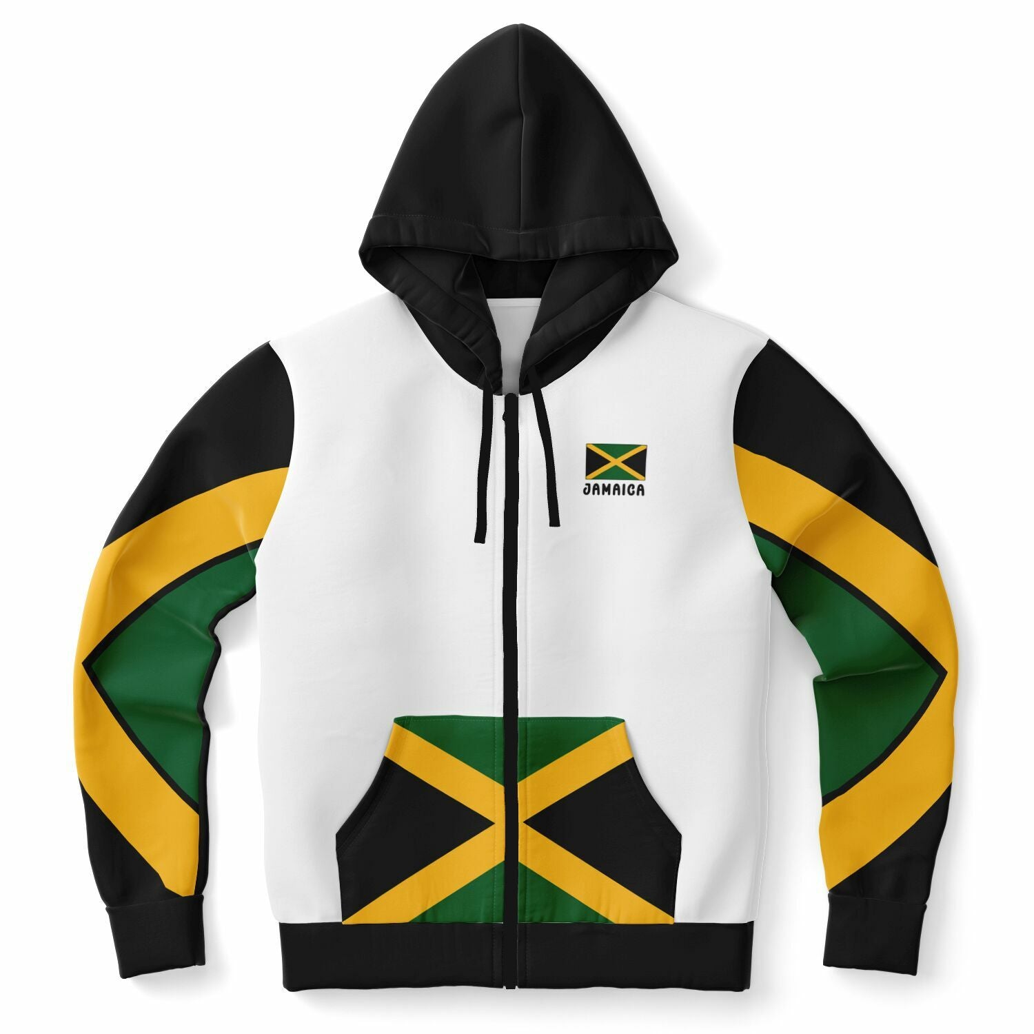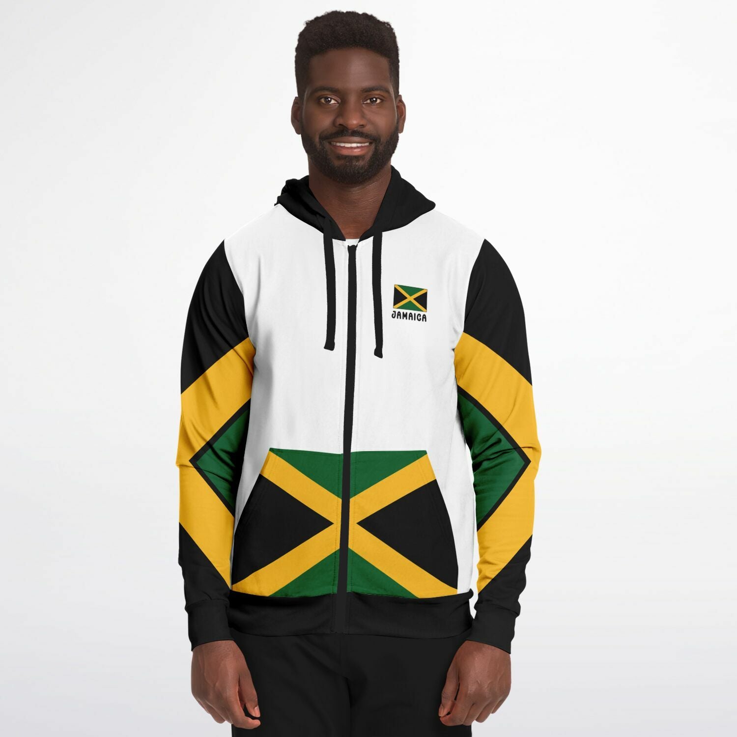 Our Casual Jamaica Hoodies are crafted using a soft and durable fabric that has a cotton feel to it. Crafted with 20% Cotton, the brushed fleece on the inside will make this your favorite and most comfortable hoodie to own. This Casual Jamaica Zip Up Hoodie offers a perfect blend of comfort, durability, and design.