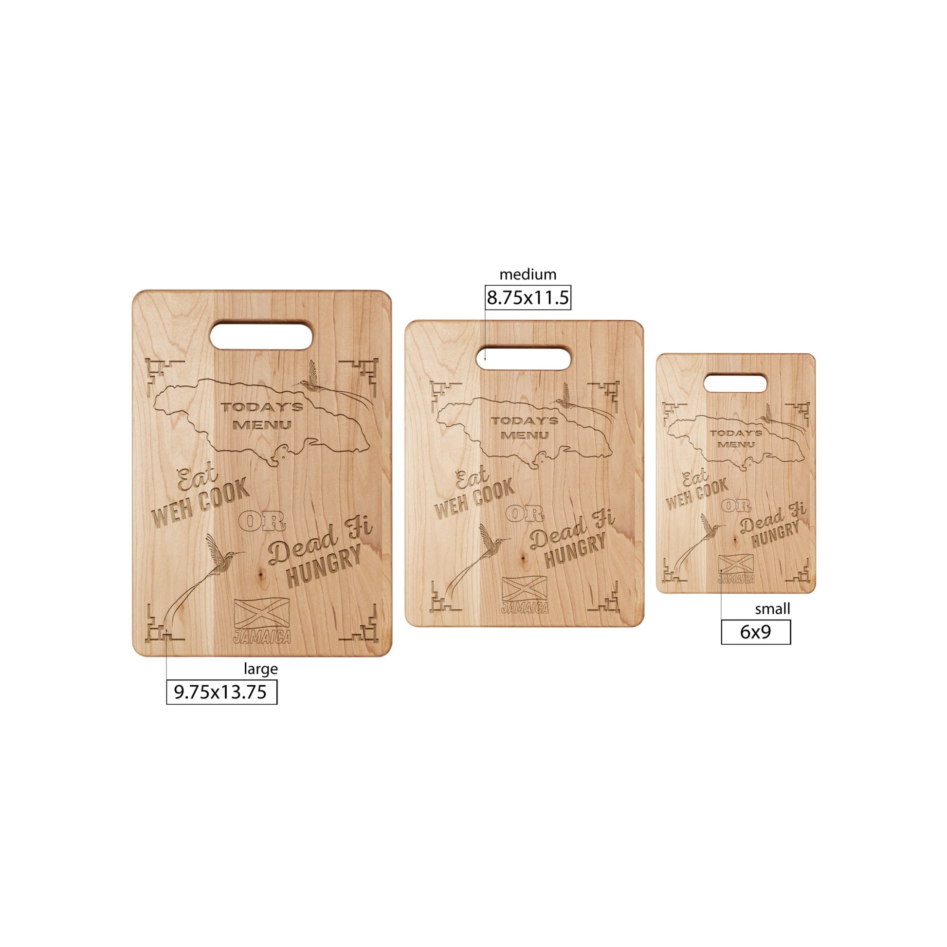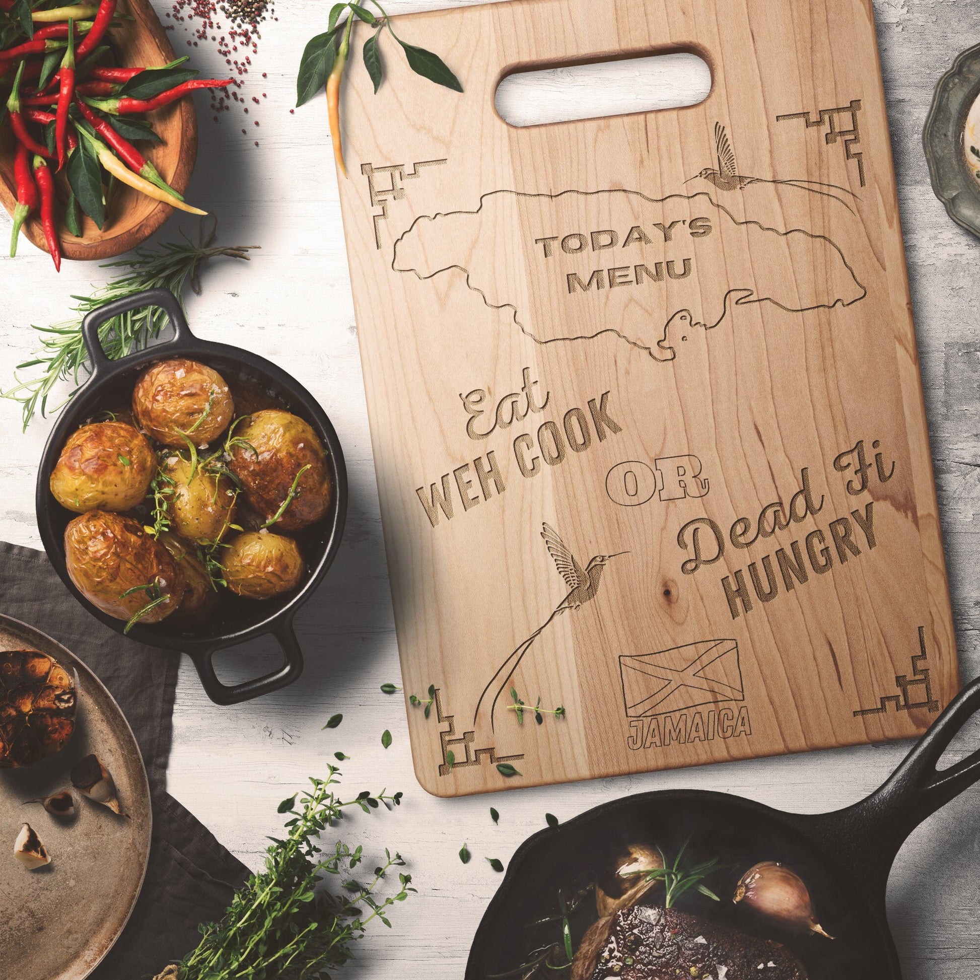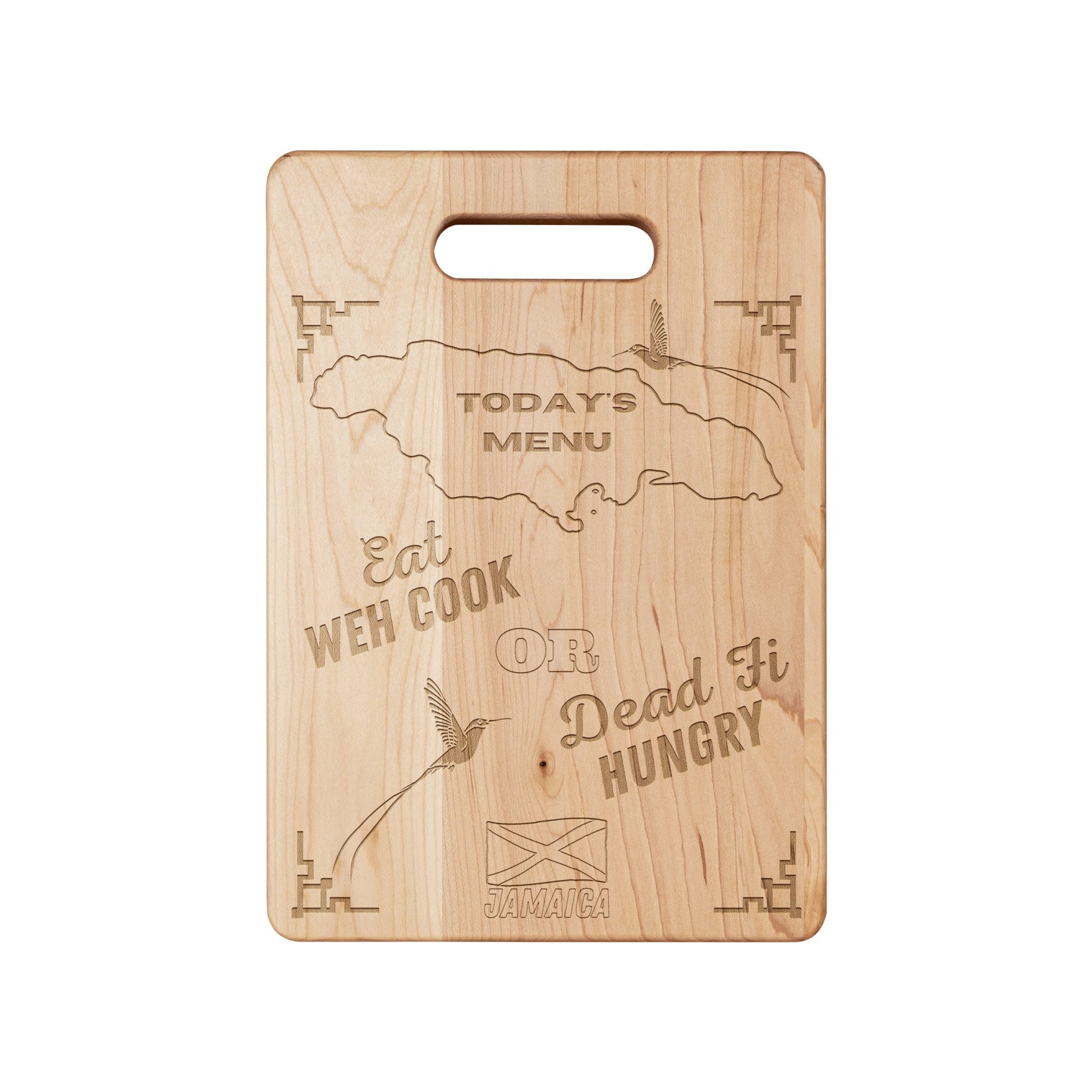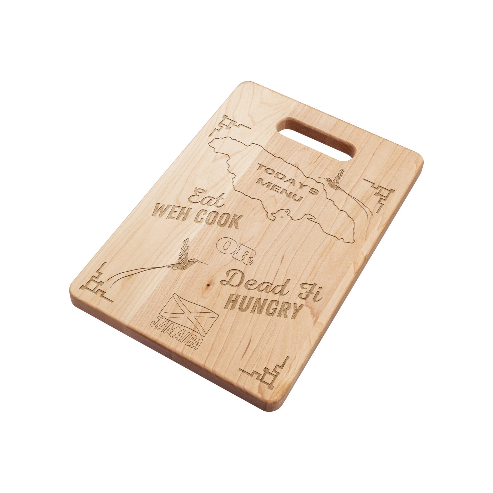 Brighten up your kitchen while impressing your guests with this multi-use Maple Jamaican cutting board. The laser etched Jamaica inspired design adds some character for decor & presentation, while the other side operates as a fully functional kitchen utensil. This item belongs in the kitchen of every Jamaican. Have you purchased one for your kitchen? Mom's would love this on mother's day.