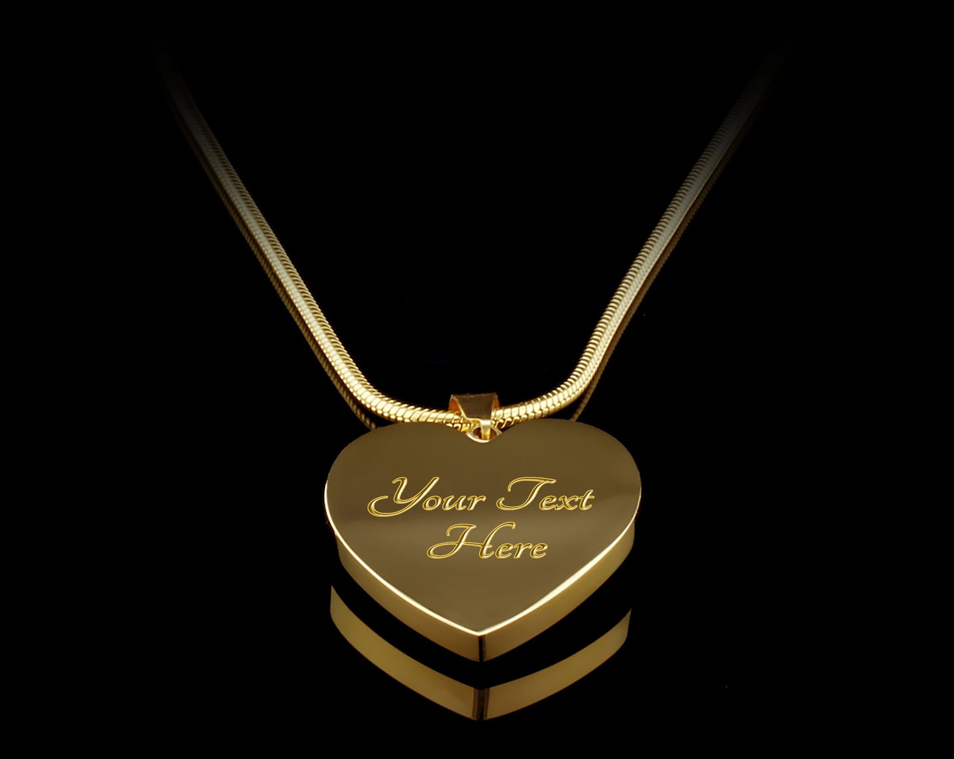Purchase This Best-seller and We Guarantee It Will Exceed Your Highest Expectations! ➜ Our patent-pending jewelry is made of high quality surgical steel with a shatterproof liquid glass coating and 18k gold finish option. ➜ Our jewelry is personalized in the U.S.A by awesome working moms just like yours! We hire and train working mothers and pay a living wage. We are proud to support strong communities and keep jobs in America! This Jewelry Item Is the Perfect Keepsake! Whether for Yourself or a Loved One. ➜ With the custom engraving option available, engrave onto the back of the pendant your loved one's name, your wedding date, an anniversary, or anything else you want to remember and keep you close to her heart. Each personalized piece offers exceptional craftsmanship that is fit to be an instant classic in your family. We Offer a 100% Happiness Guarantee ➜ If you’re not 100% satisfied with your purchase for any reason, please contact us and we will make it right. Your satisfaction is our ultimate goal. Product Dimensions ➜ Luxury Necklace: 18-22" (45-56cm) adjustable ➜ Heart Pendant: 24mm x 24mmThank you for supporting my business. Feel free to look around the shop!
