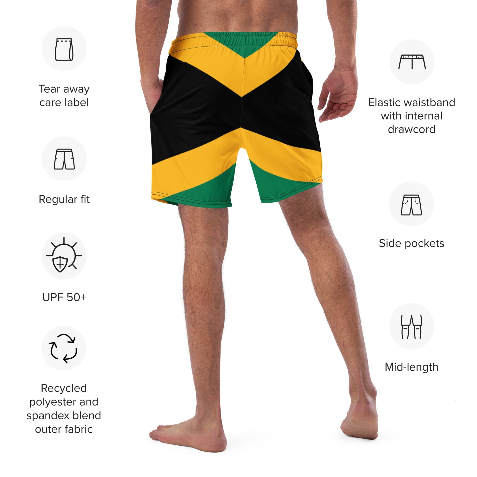 These Jamaica Flag swim trunks / athletic shorts have everything you need for a hot summer day theyr'e quick-drying and breathable, have multiple pockets for your belongings, and feature a silky, anti-chafe inner liner. Get yours now because Out of Many, One People! The perfect shorts to workout in the gym or casual throughout your everyday life.