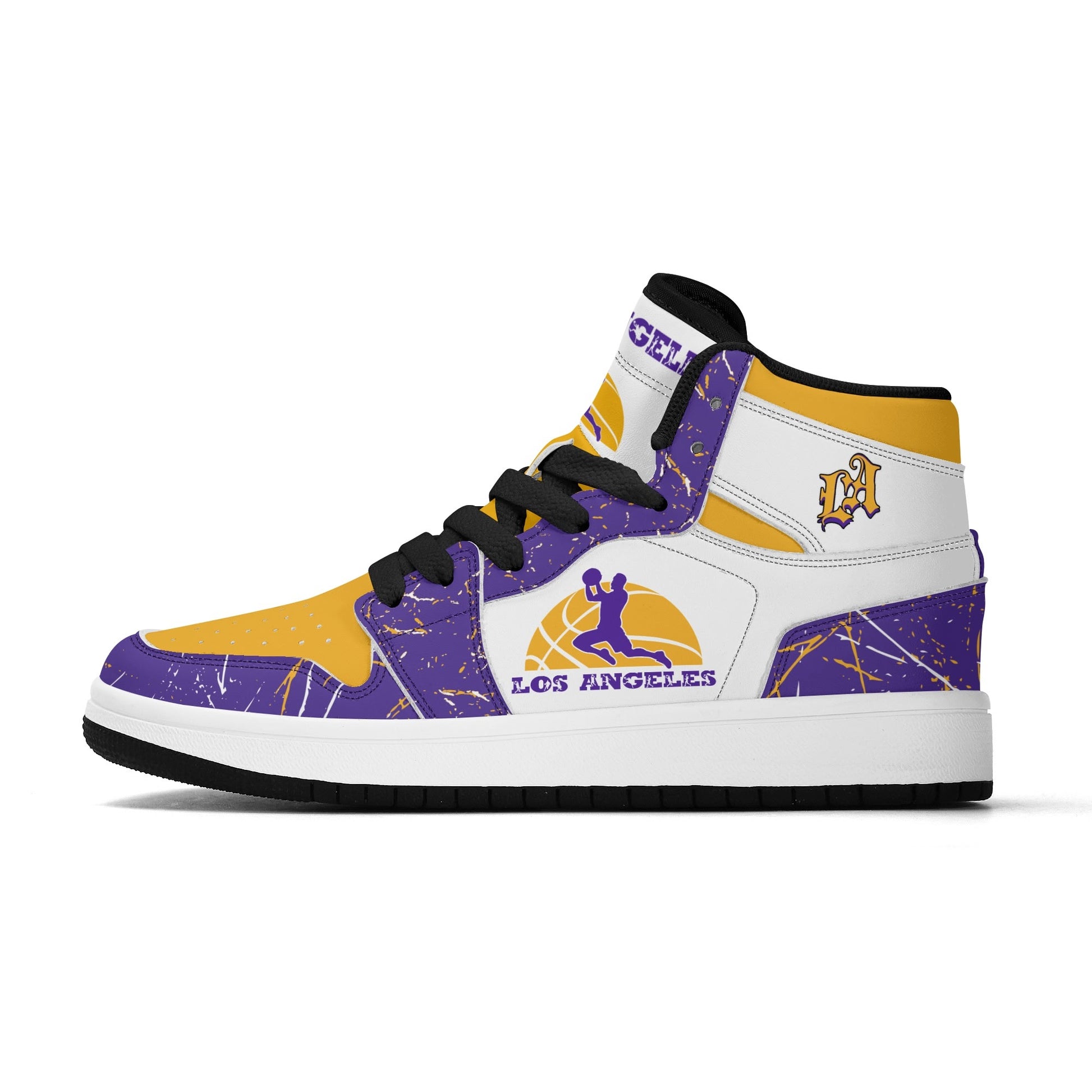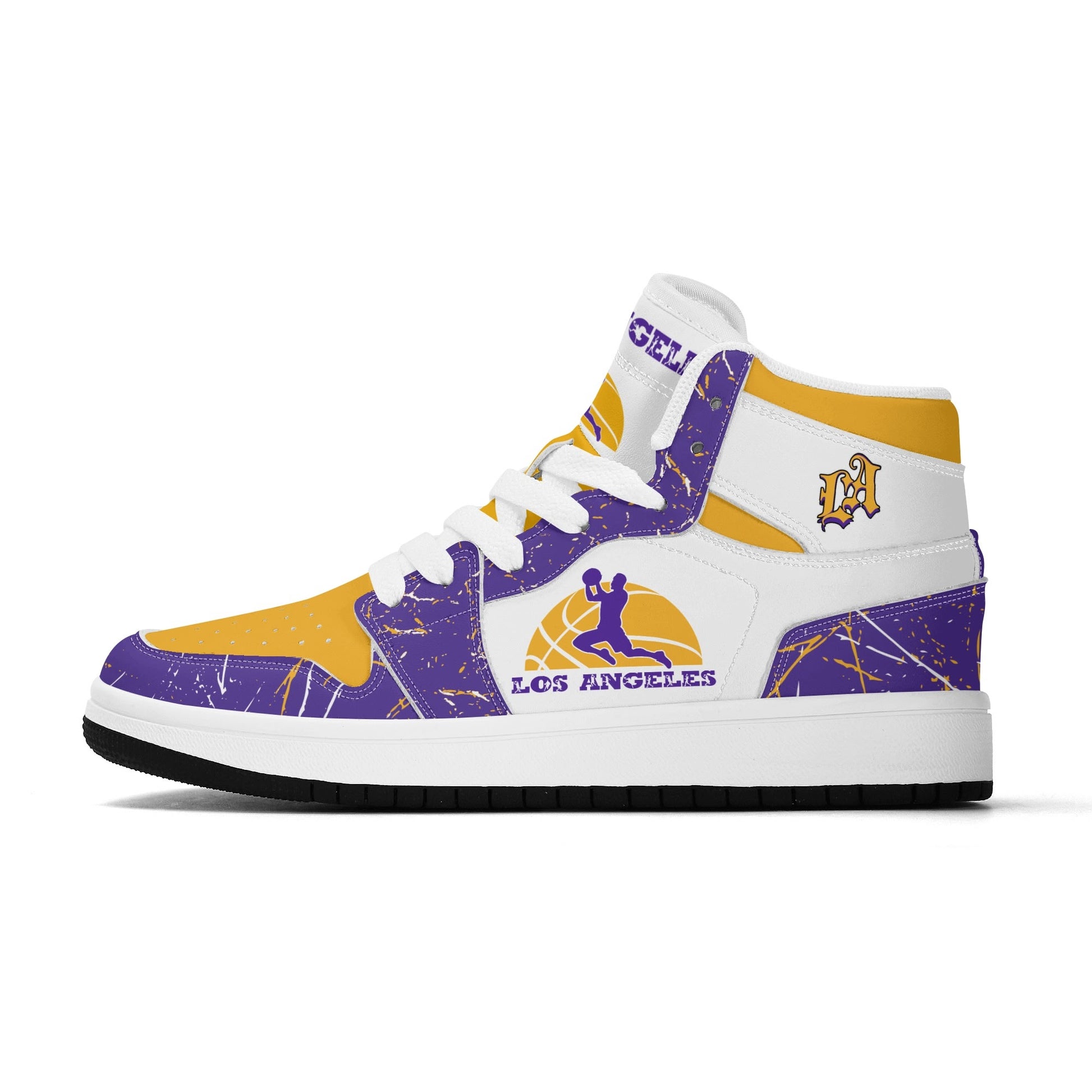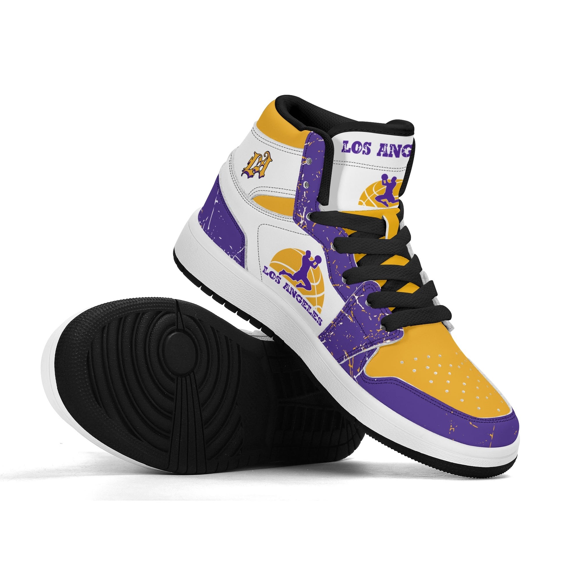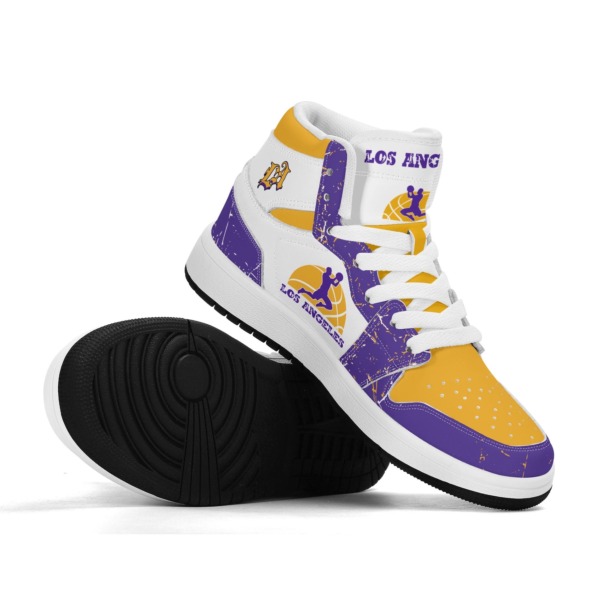 Our Los Angeles Sports Team Themed Shoes for kids are inspired by iconic hightop basketball shoes and footwear, these kicks are the perfect blend of street style and athletic performance.