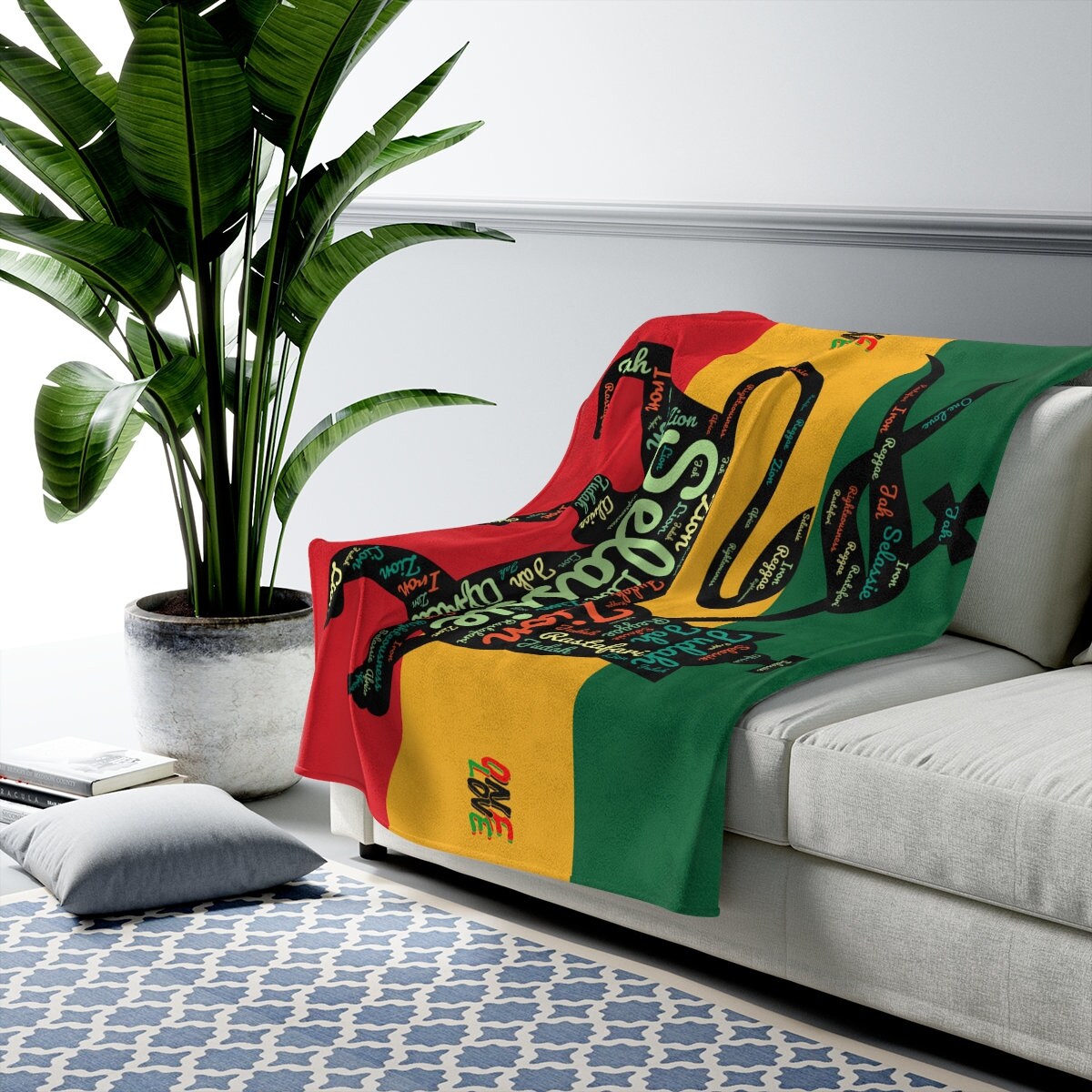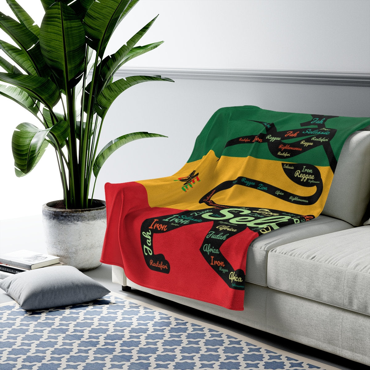 Set the ambiance with this Lion of Judah Rasta Colored Fleece Blanket. The colors are popping and extremely vibrant. It is soft to touch and perfect for any home. It's the perfect item for yourself or as a gift for your friends and family. This plush blanket is for those who believe in clean livity and the Rastafarian movement.....when it comes down to it this blanket is simply beautiful. The Lion of Judah.