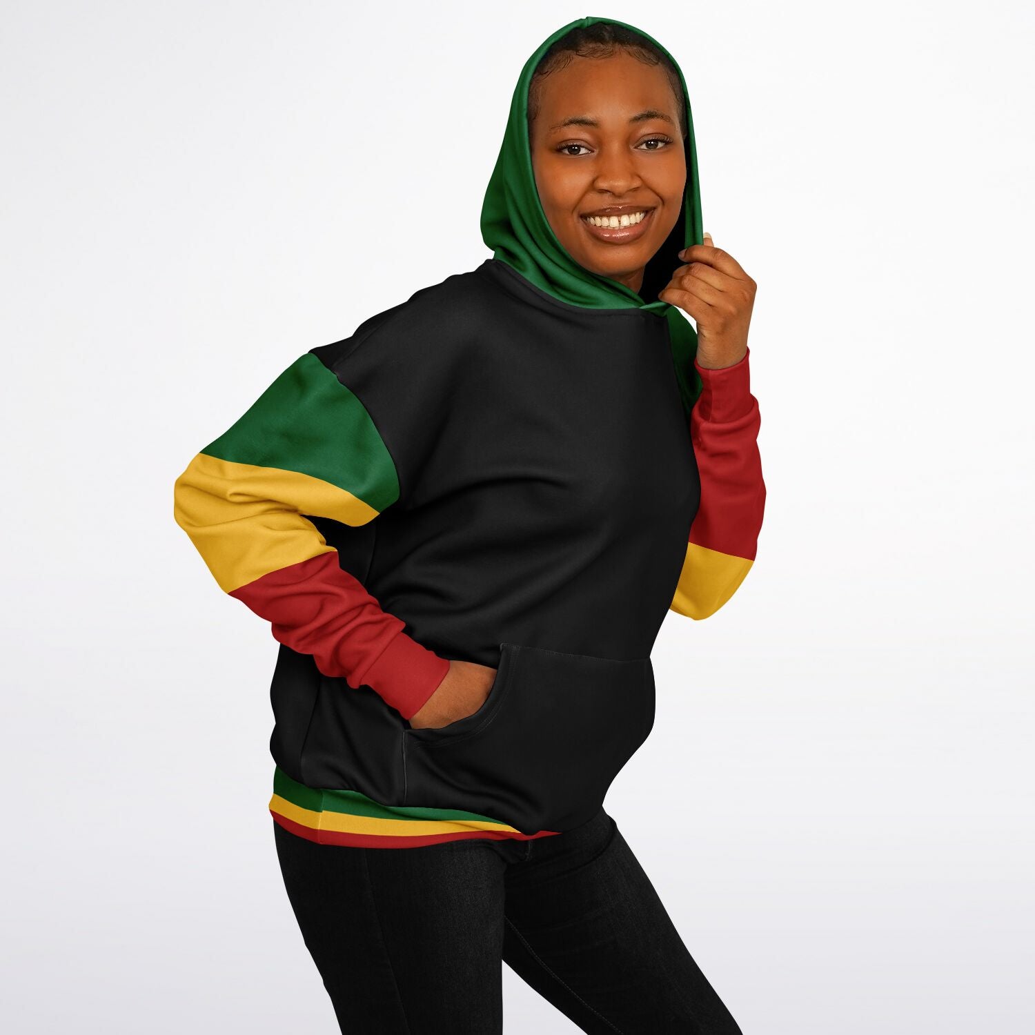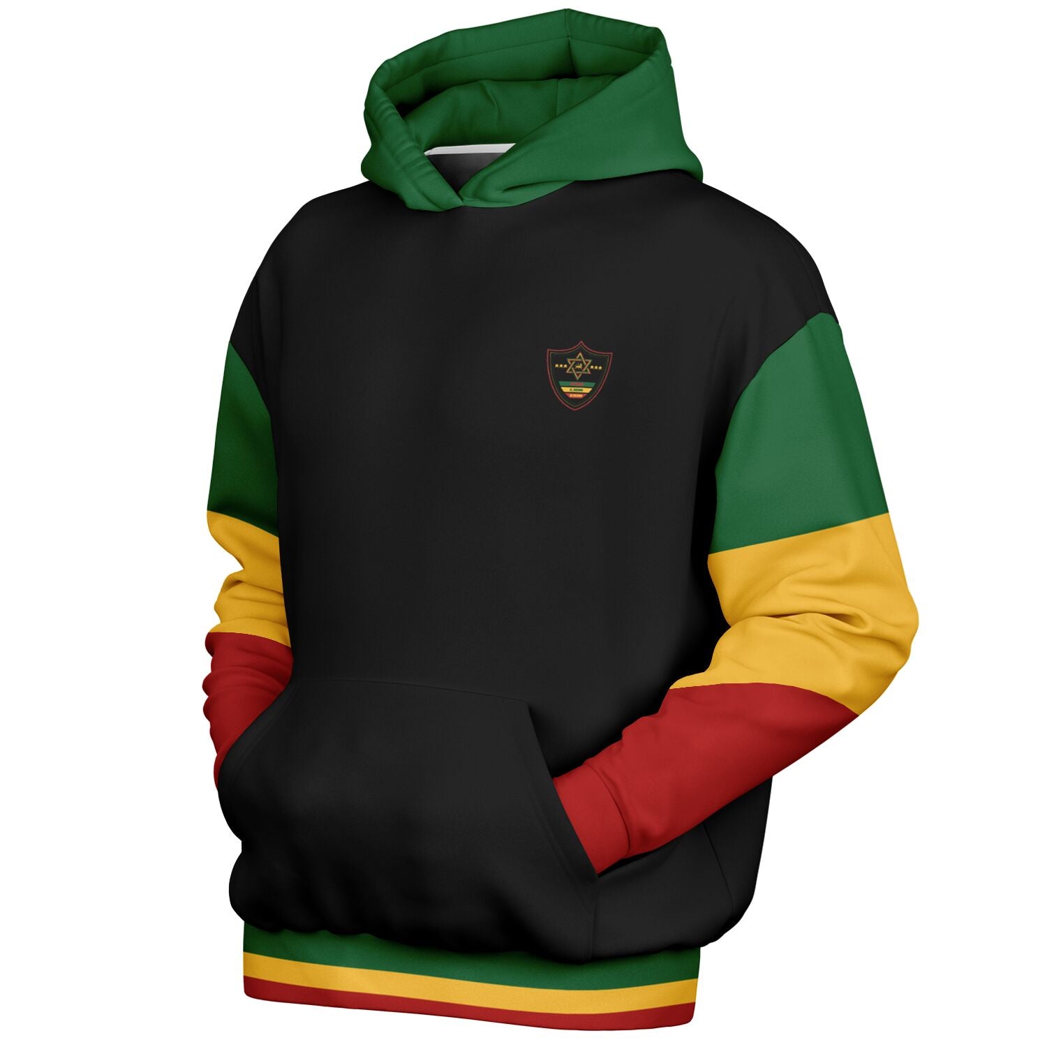 Our Rasta Heavyweight Pull Over hoodie features a soft and durable and premium blend of 93% polyester and 7% spandex, while the brushed fleece interior adds an extra layer of warmth. Crafted from a super warm and thick fabric that keeps you comfortable in colder weather. Our Rasta Hoodie offers a perfect blend of comfort, durability, and warmth. The smooth, soft fabric feels great against the skin, while the high-definition colors stay vibrant through daily wear.