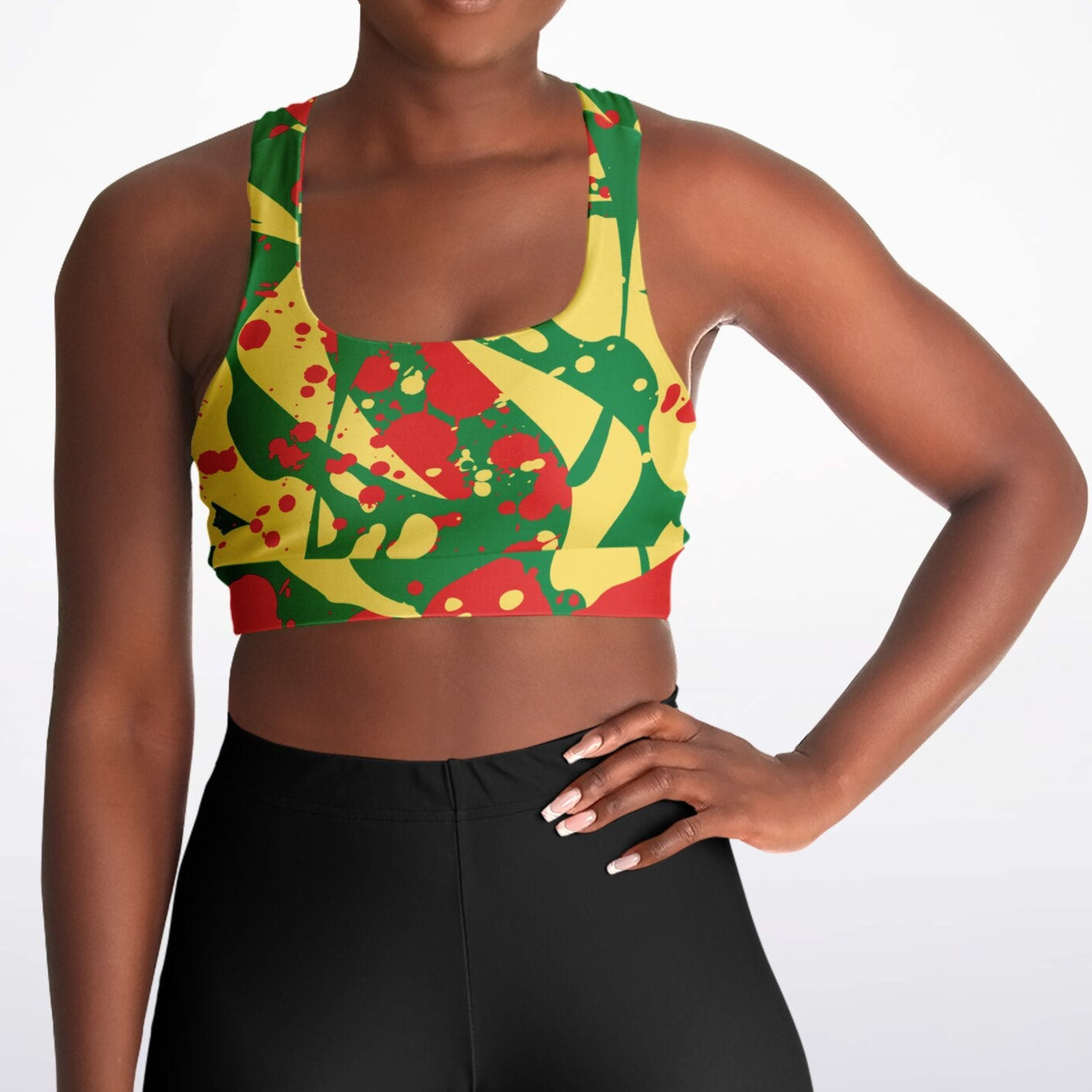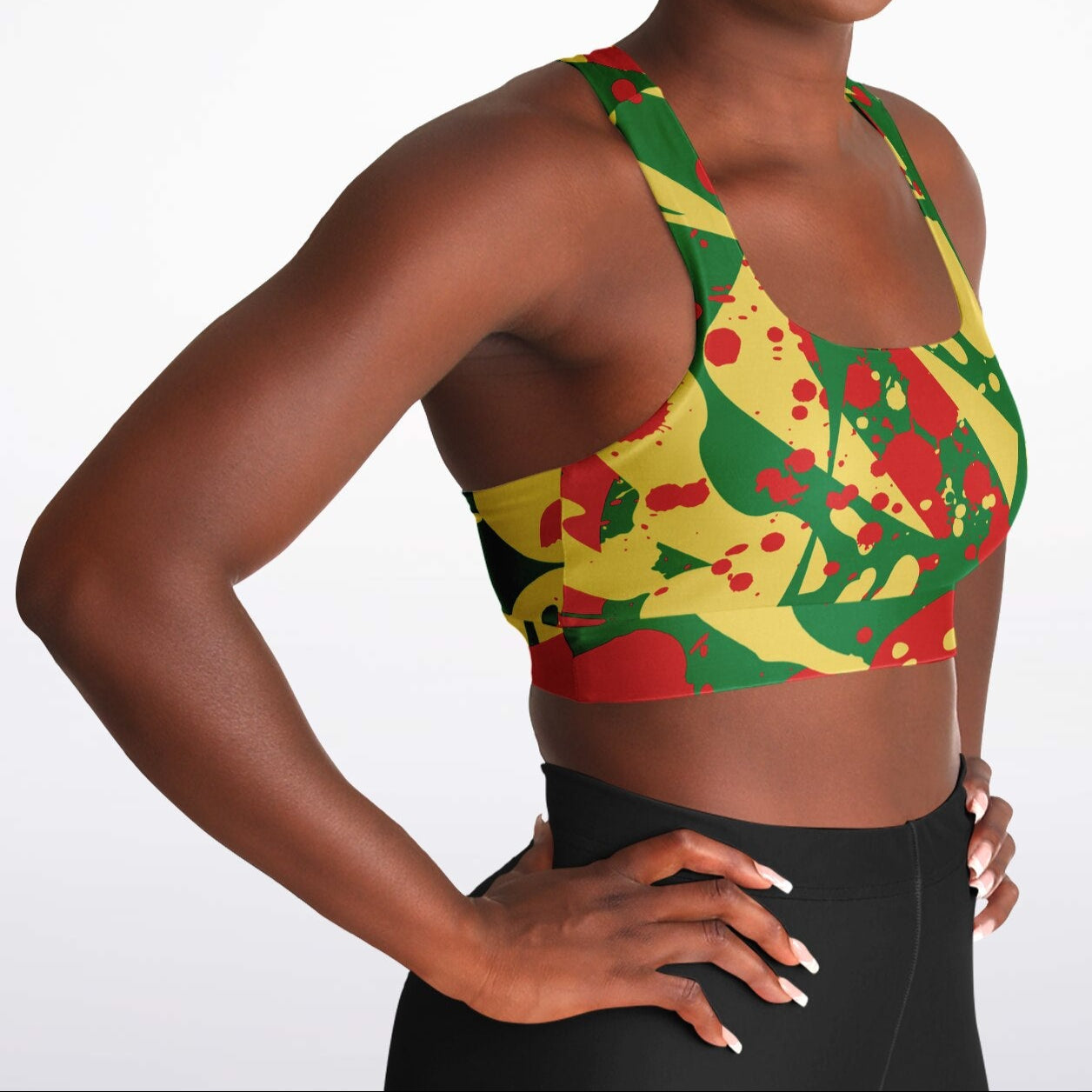 • Eco-Friendly Fabric: Crafted from 78% recycled polyester and 22% spandex, this sports bra is both stylish and environmentally conscious.
