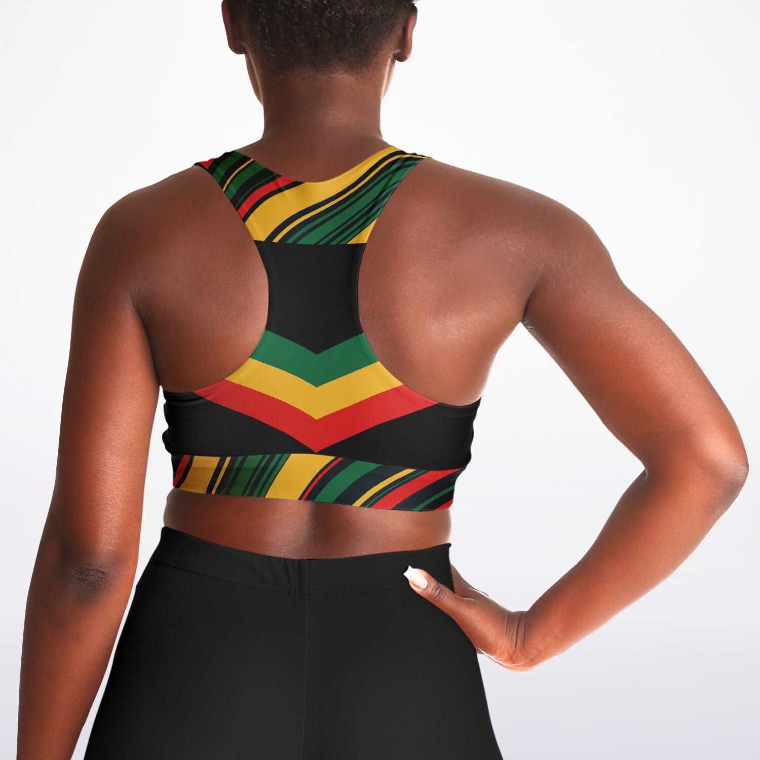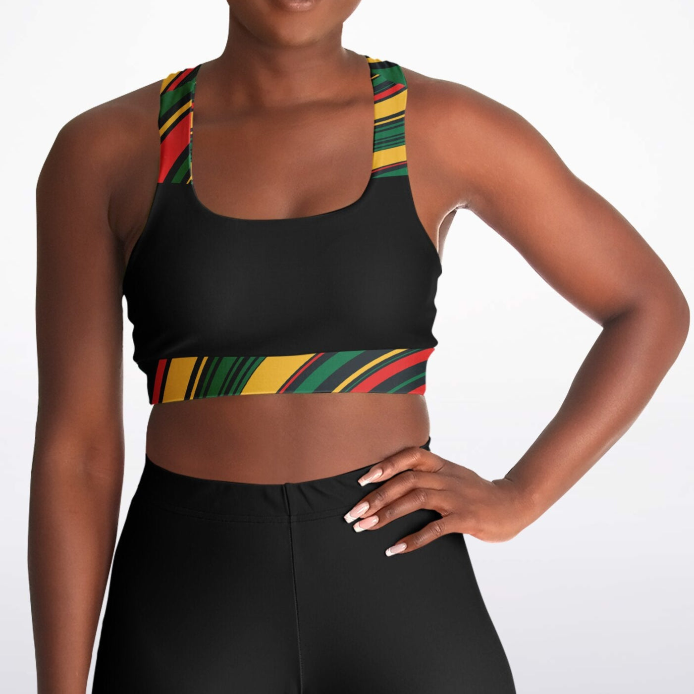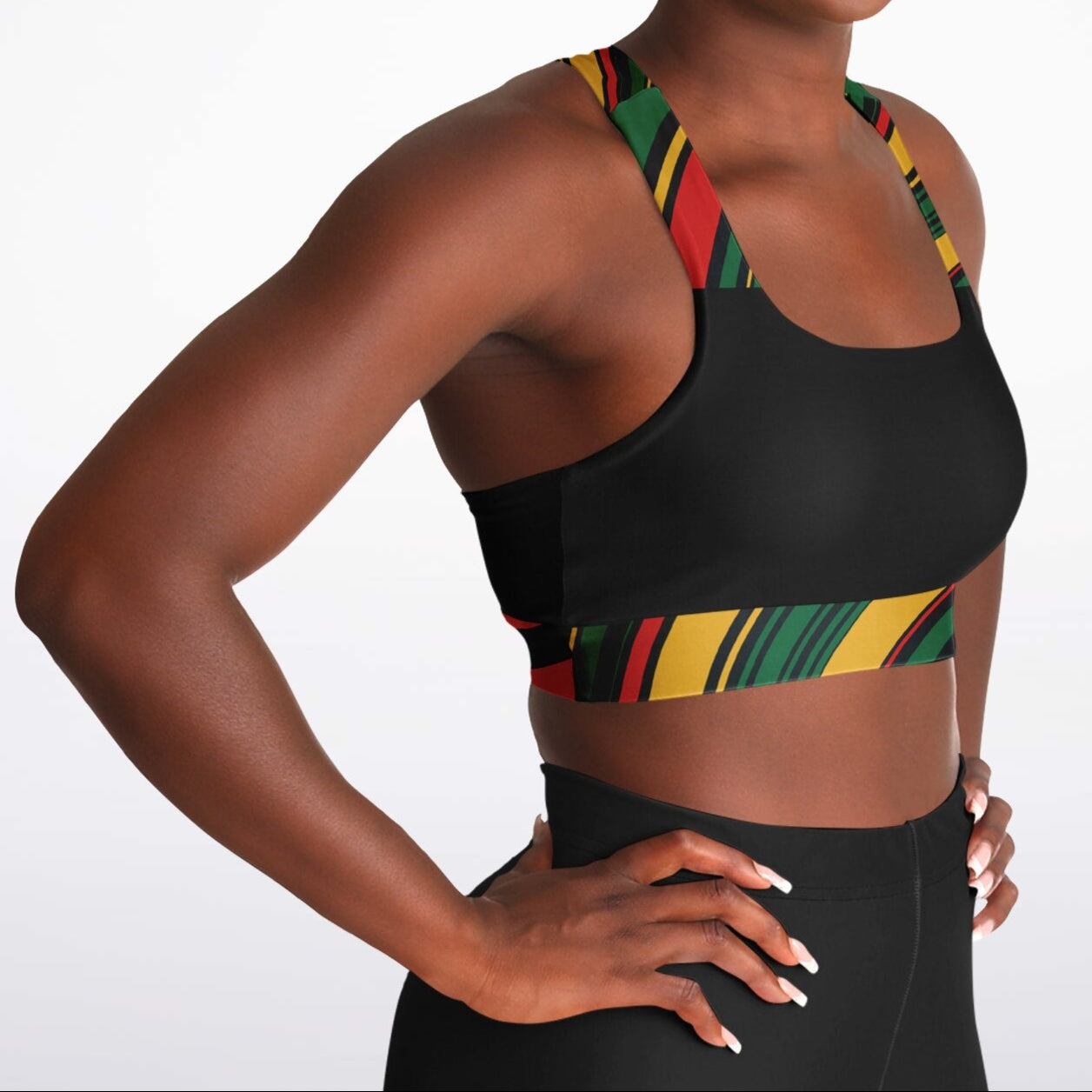 • Eco-Friendly Fabric: Crafted from 78% recycled polyester and 22% spandex, this sports bra is both stylish and environmentally conscious.