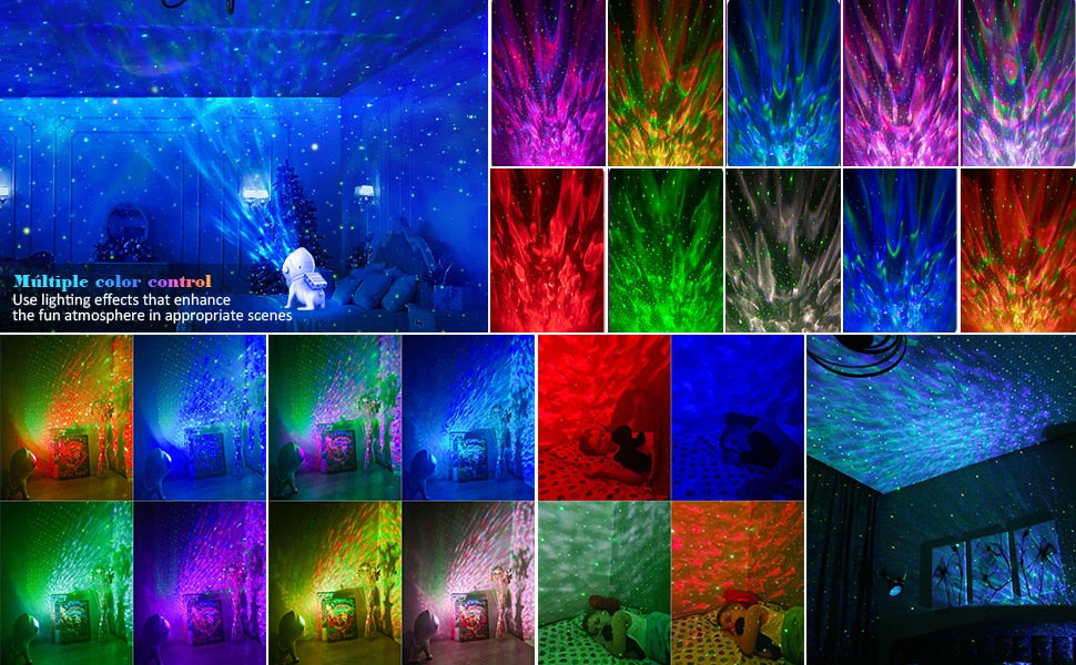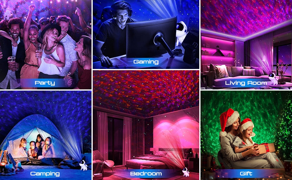 But that's not all, this projector also features Bluetooth 5.0 speaker with music sync lights, which allows you to connect your music player and have the starlight synchronized with the beat of your music, creating a fun and energetic party atmosphere. You can also connect it to your gaming device and add cool lighting effects into your game room, or even relax while having a bubble bath, giving you a surprise experience.